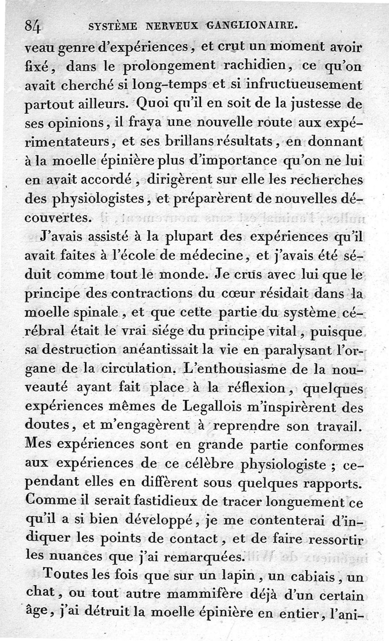 Recherches expérimentales sur les fonctions du système nerveux ganglionnaire