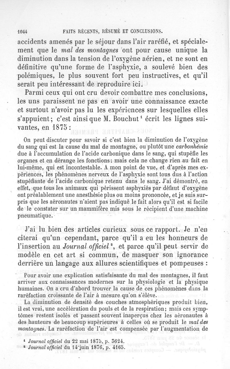 La pression barométrique : recherches de physiologie expérimentale