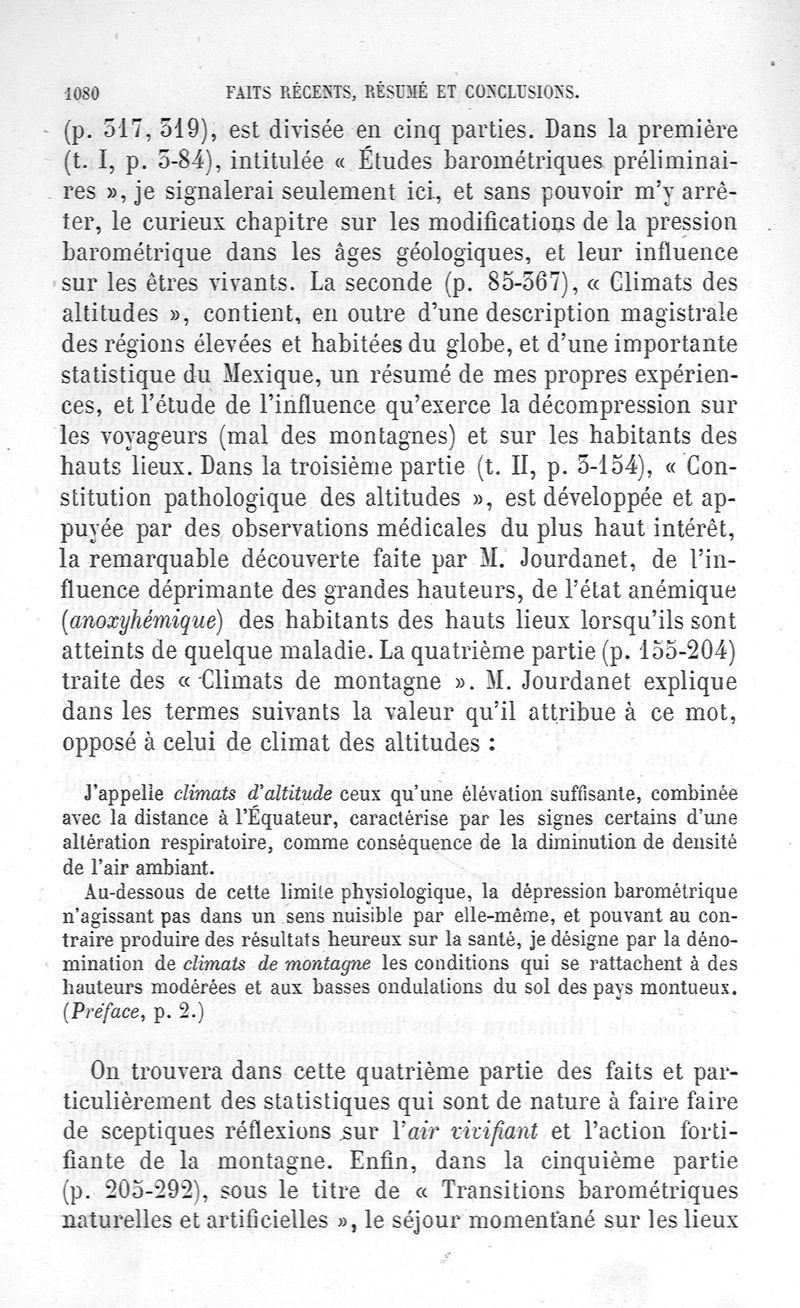 La pression barométrique : recherches de physiologie expérimentale