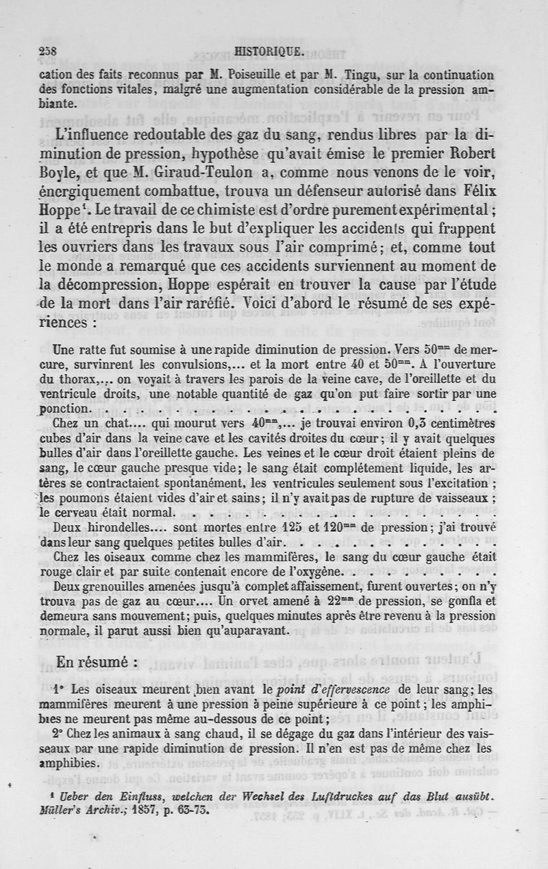 La pression barométrique : recherches de physiologie expérimentale
