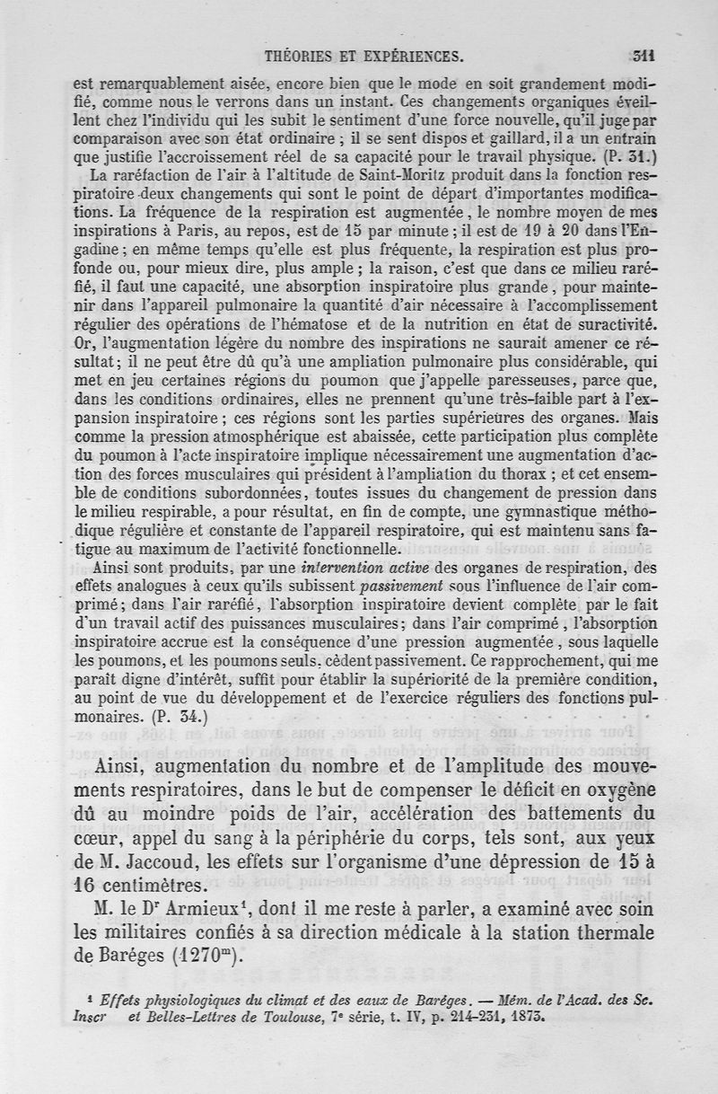 La pression barométrique : recherches de physiologie expérimentale
