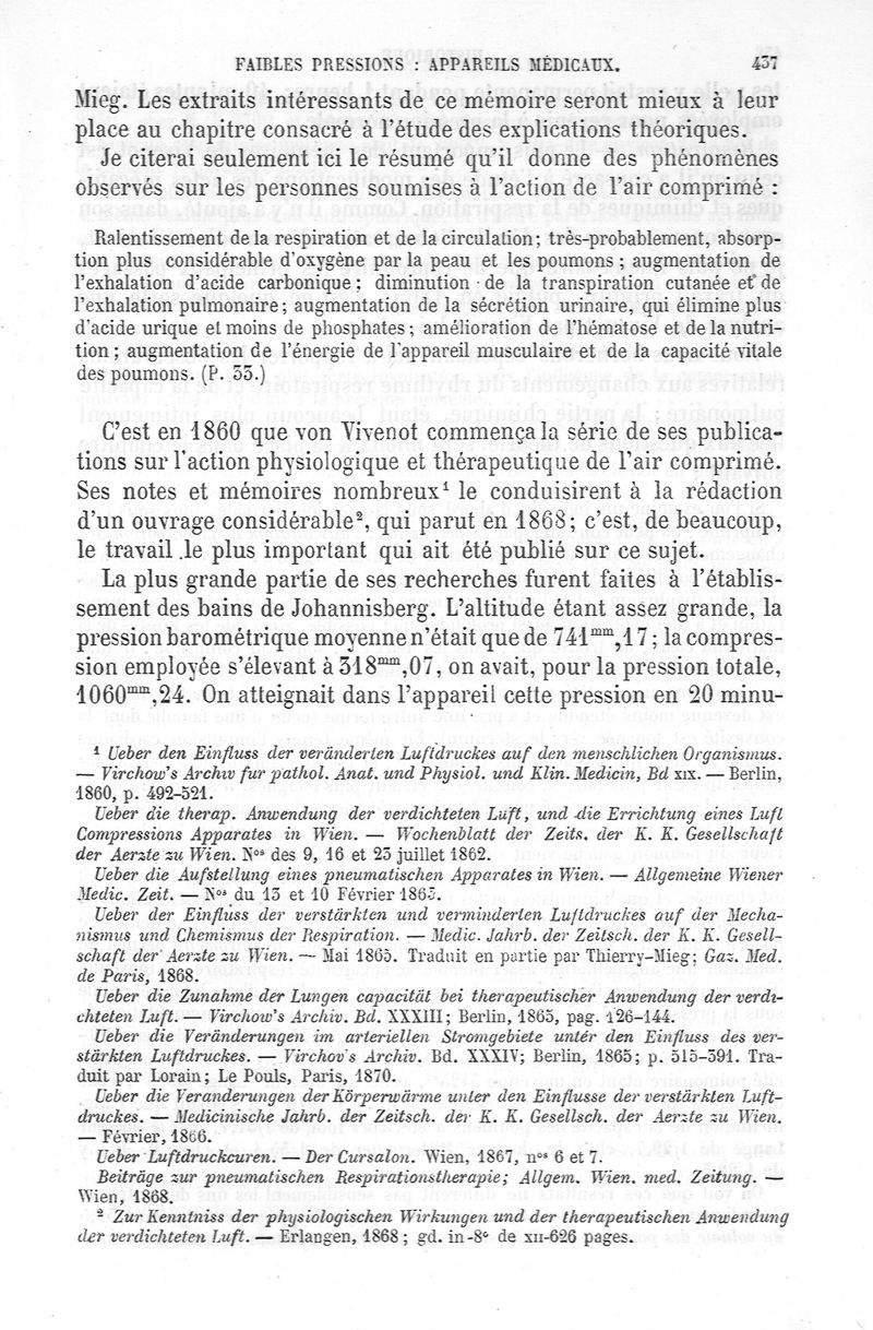 La pression barométrique : recherches de physiologie expérimentale