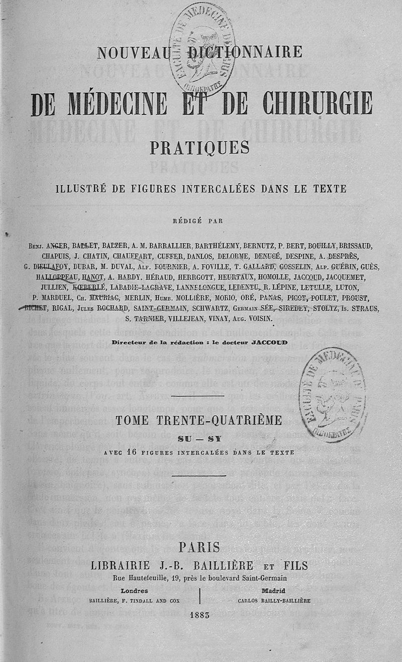Nouveau dictionnaire de médecine de chirurgie pratiques, illustré de figures intercalées dans le texte, sous la direction du Dr Jaccoud. Tome 34