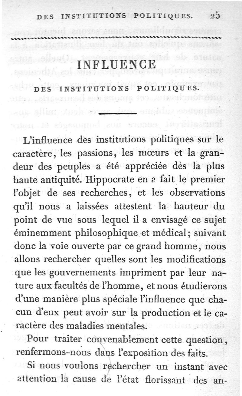 Des causes morales et physiques des maladies mentales et de quelques autres affections nerveuses, telles que l'hystérie, la nymphomanie et le satyriasis