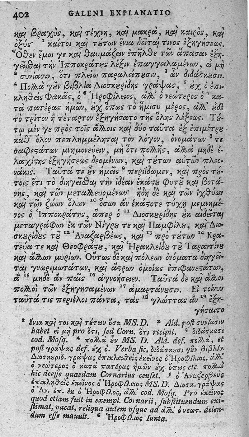 Erotiani, Galeni et Herodoti glossaria in Hippocratem / ex recensione Henrici Stephani Graece et Latine. Accesserunt emendationes Henrici Stephani, Bartholomaei Eustachii, Adriani Heringae, etc. Recensuit varietatem lectionis ex manuscriptis codd. Dorvillii et Mosquensi addidit suasque animadversiones adiecit Io. Ge. Frider. Franzius