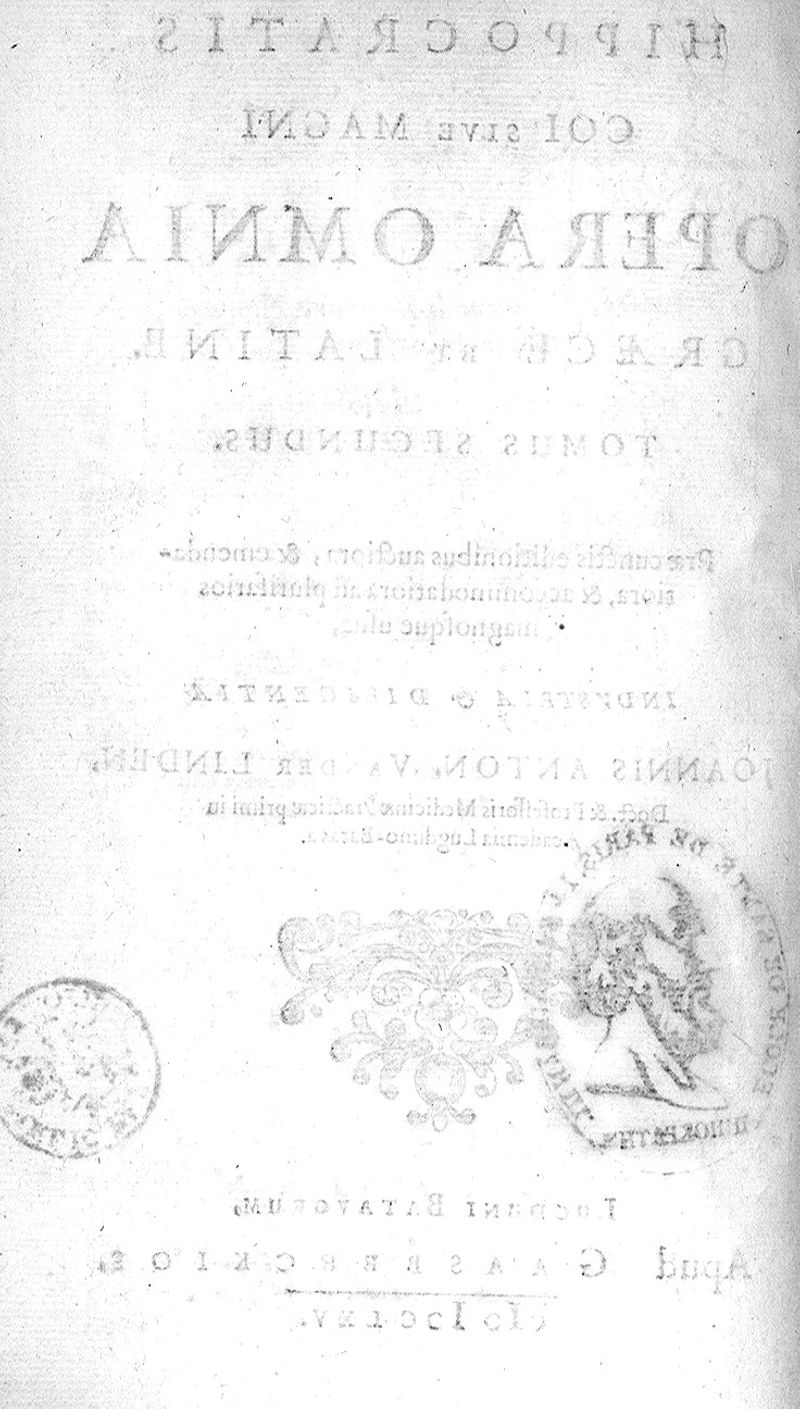 Magni Hippocratis Coi Opera omnia graece et latine edita... industria ac diligentia Joan. Antonidae Van der Linden volumen primum