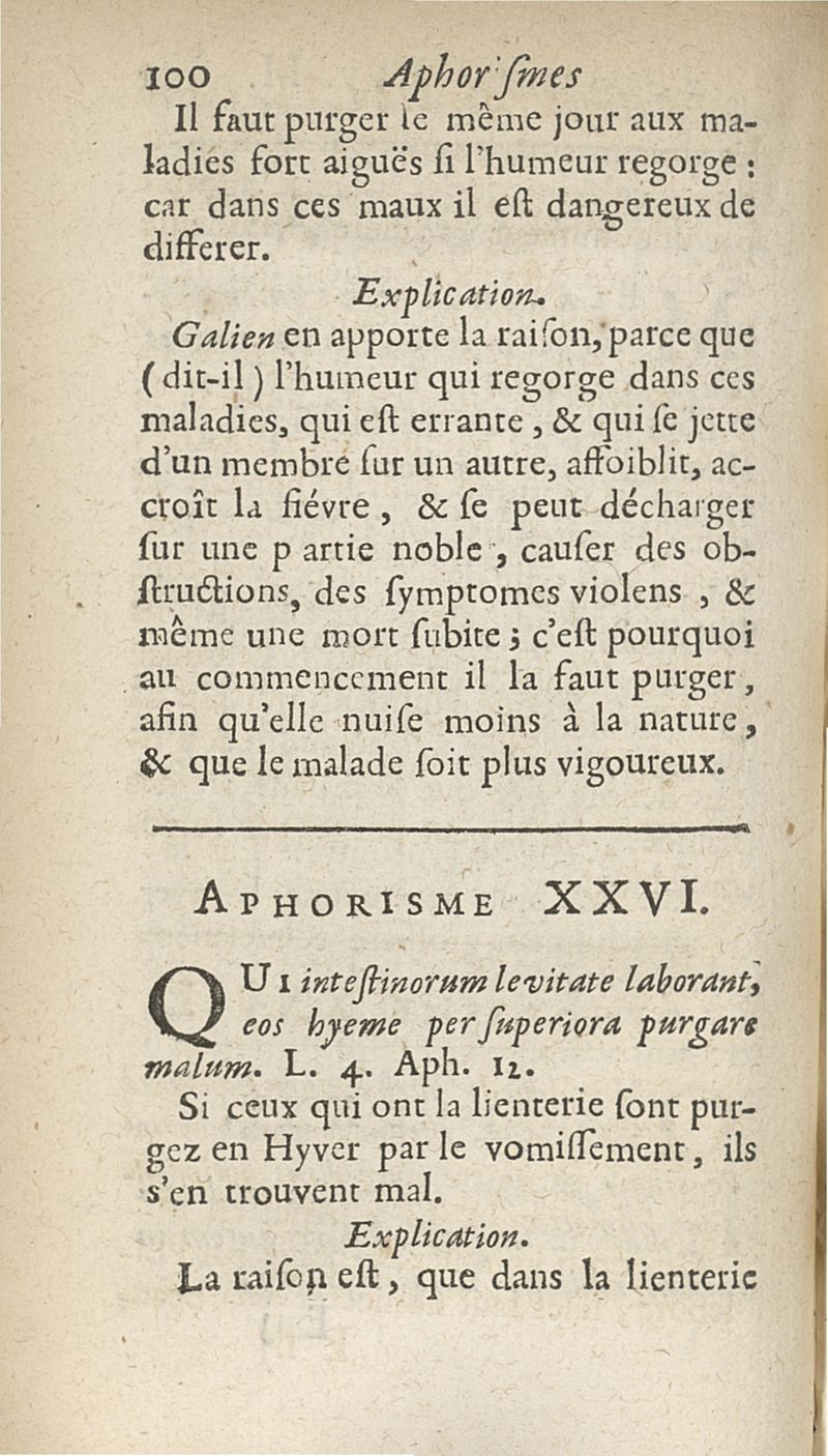 Les Aphorismes d'Hippocrate, rangez selon l'ordre des parties du corps humain...