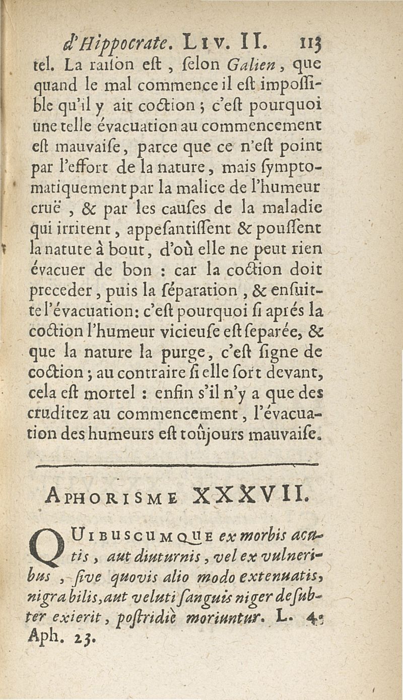 Les Aphorismes d'Hippocrate, rangez selon l'ordre des parties du corps humain...