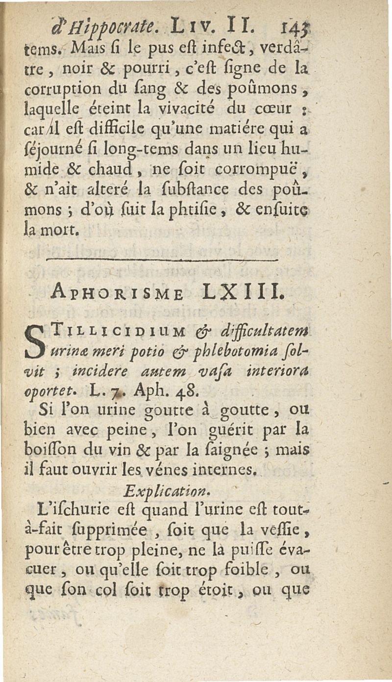 Les Aphorismes d'Hippocrate, rangez selon l'ordre des parties du corps humain...