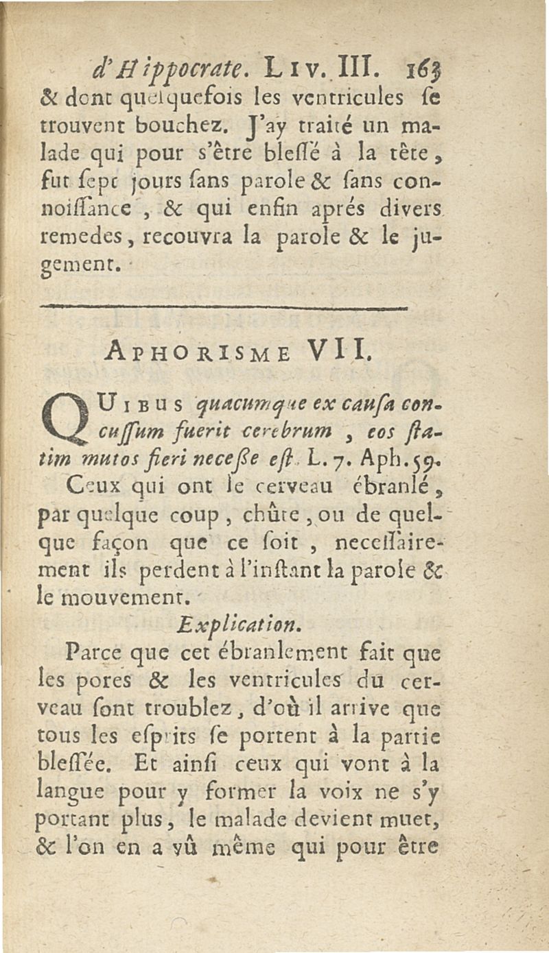 Les Aphorismes d'Hippocrate, rangez selon l'ordre des parties du corps humain...