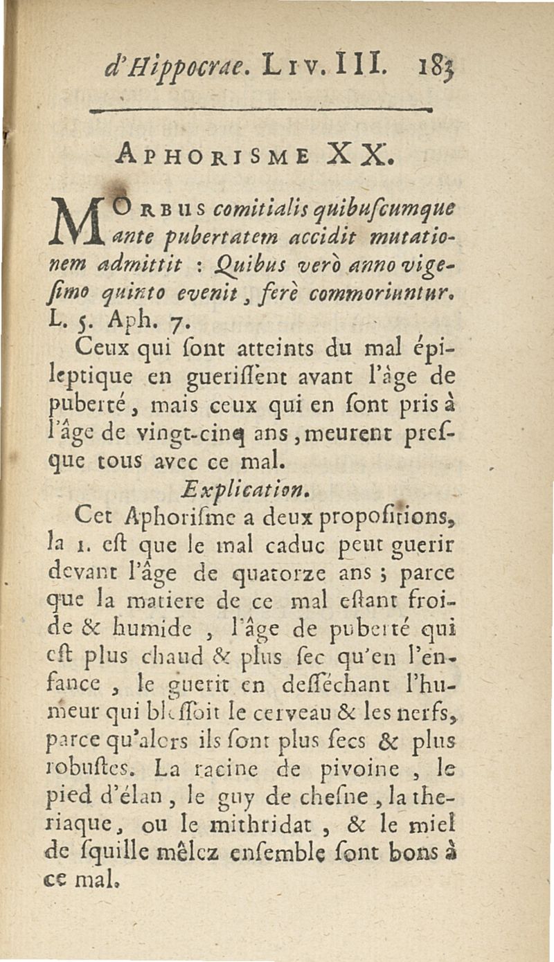 Les Aphorismes d'Hippocrate, rangez selon l'ordre des parties du corps humain...