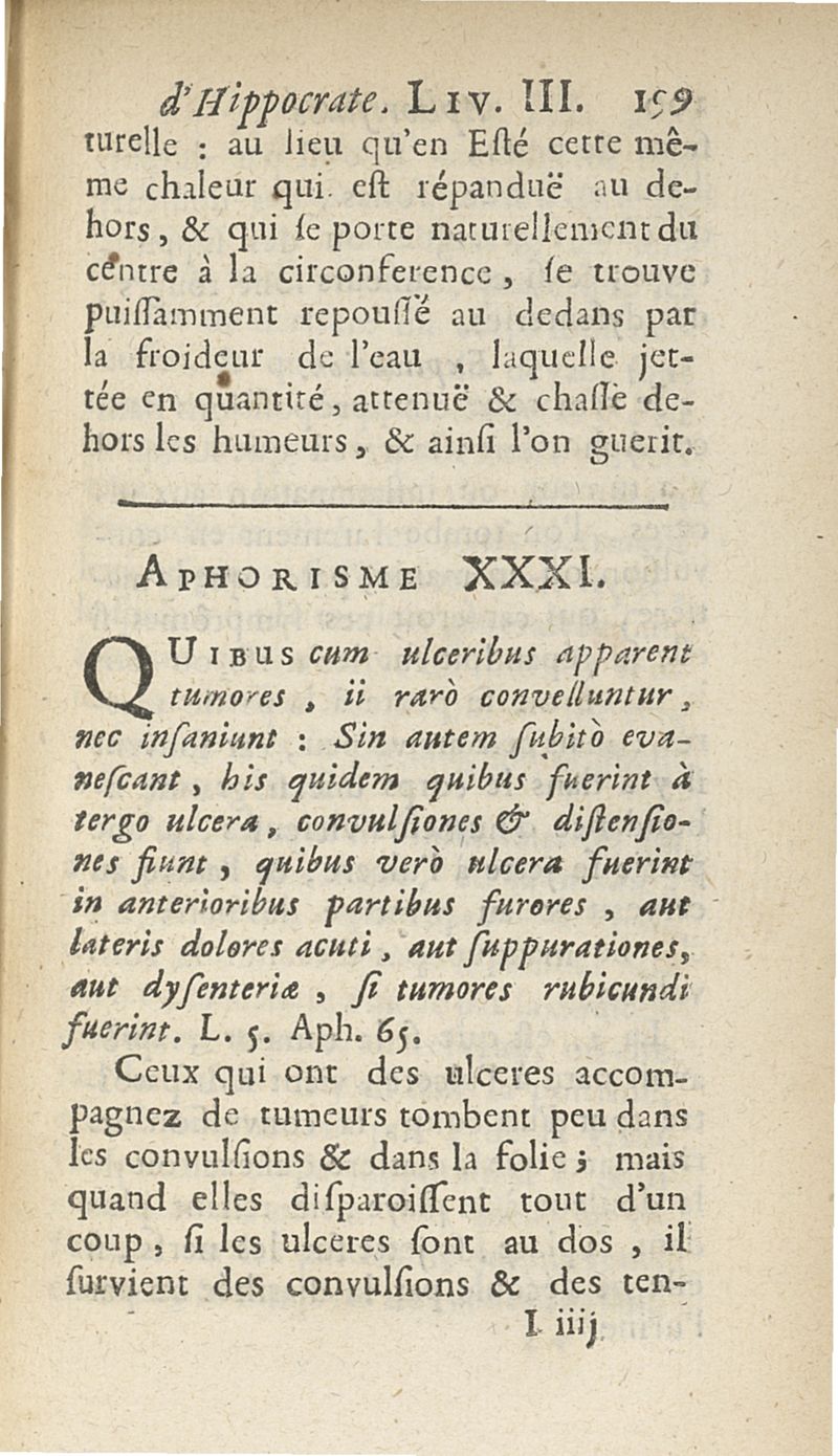 Les Aphorismes d'Hippocrate, rangez selon l'ordre des parties du corps humain...