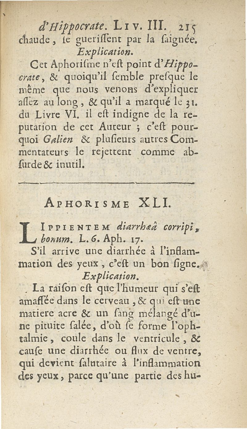 Les Aphorismes d'Hippocrate, rangez selon l'ordre des parties du corps humain...
