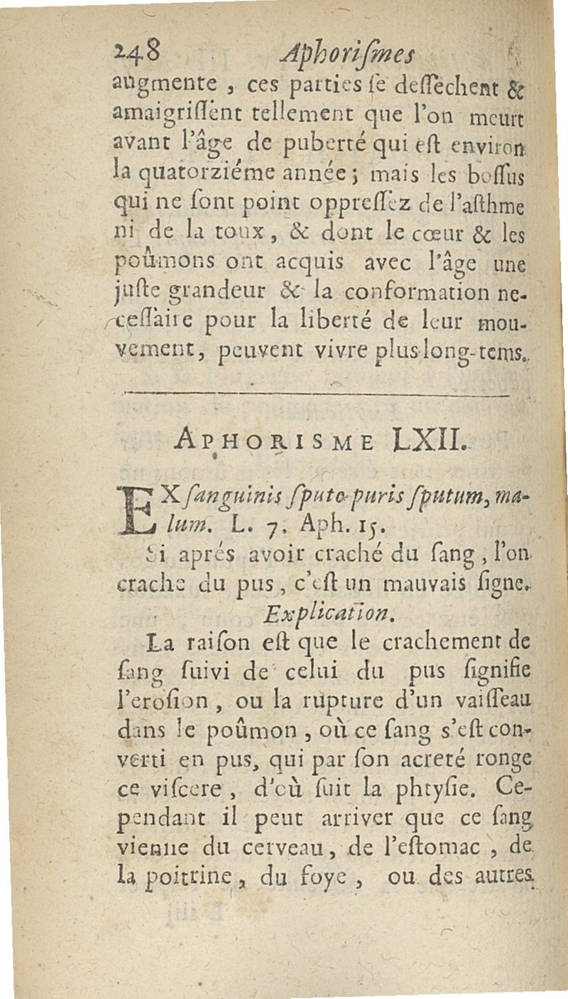 Les Aphorismes d'Hippocrate, rangez selon l'ordre des parties du corps humain...