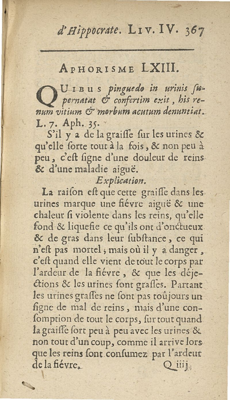 Les Aphorismes d'Hippocrate, rangez selon l'ordre des parties du corps humain...