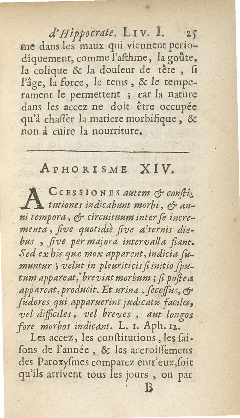 Les Aphorismes d'Hippocrate, rangez selon l'ordre des parties du corps humain...