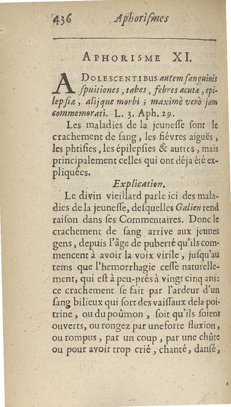 Les Aphorismes d'Hippocrate, rangez selon l'ordre des parties du corps humain...