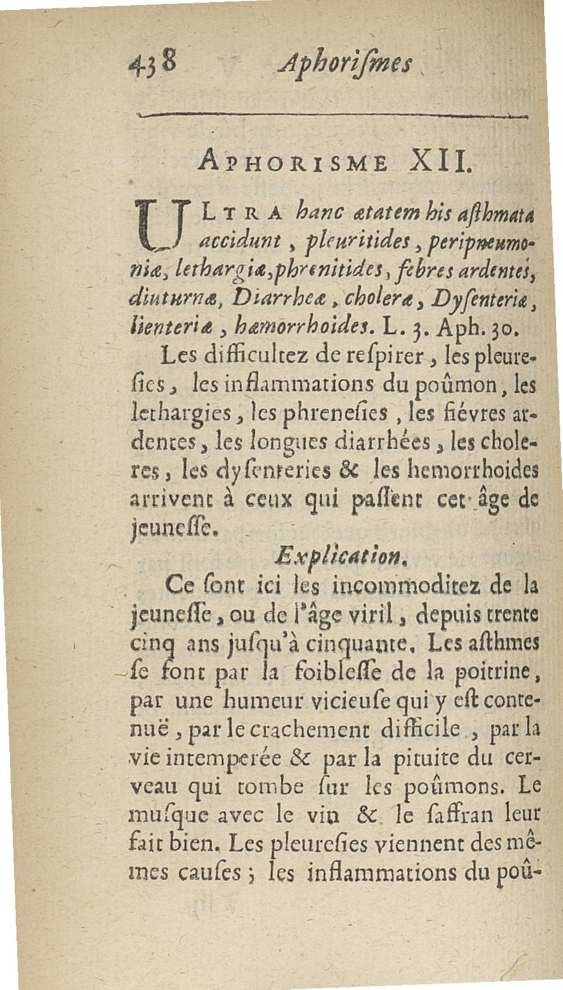 Les Aphorismes d'Hippocrate, rangez selon l'ordre des parties du corps humain...