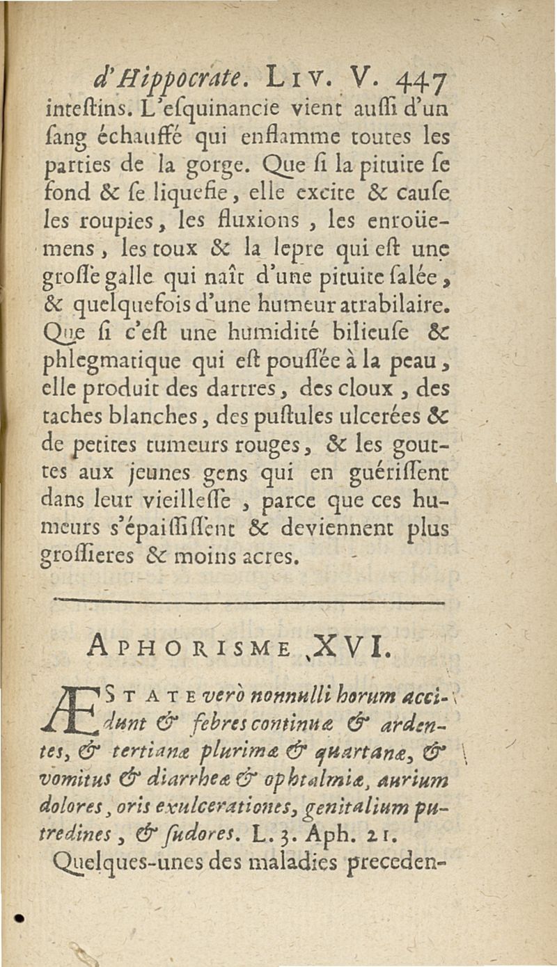 Les Aphorismes d'Hippocrate, rangez selon l'ordre des parties du corps humain...