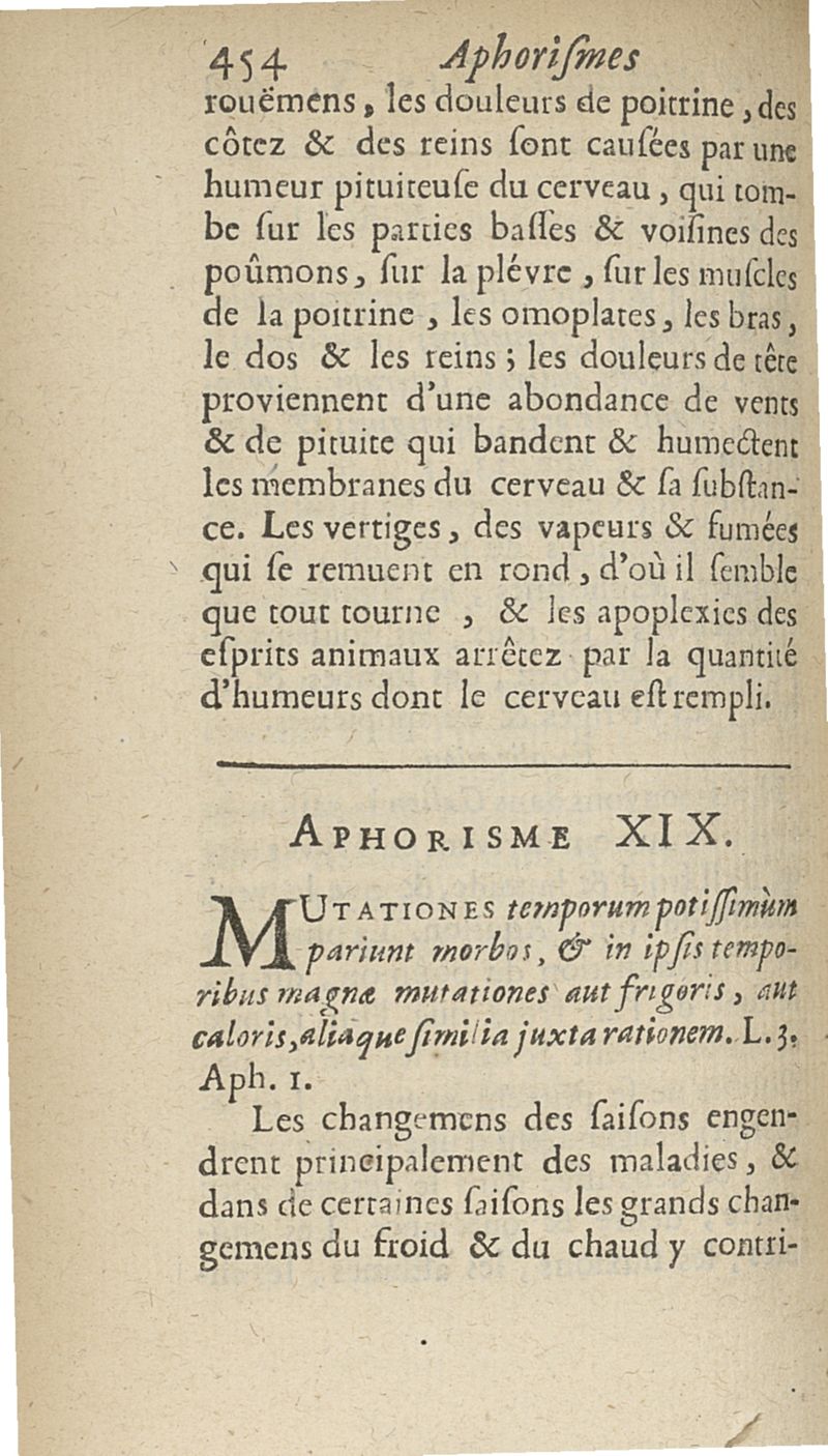 Les Aphorismes d'Hippocrate, rangez selon l'ordre des parties du corps humain...