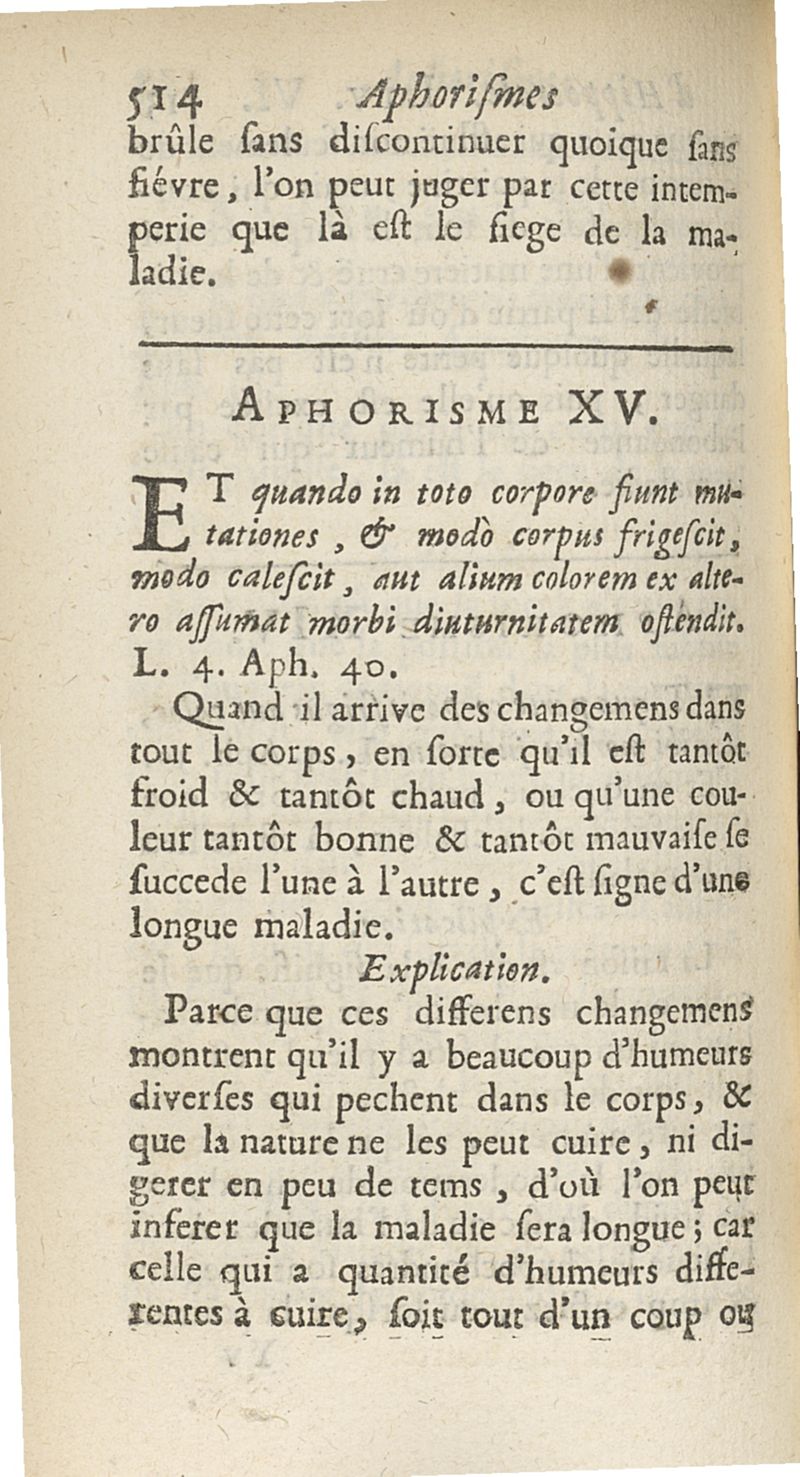 Les Aphorismes d'Hippocrate, rangez selon l'ordre des parties du corps humain...