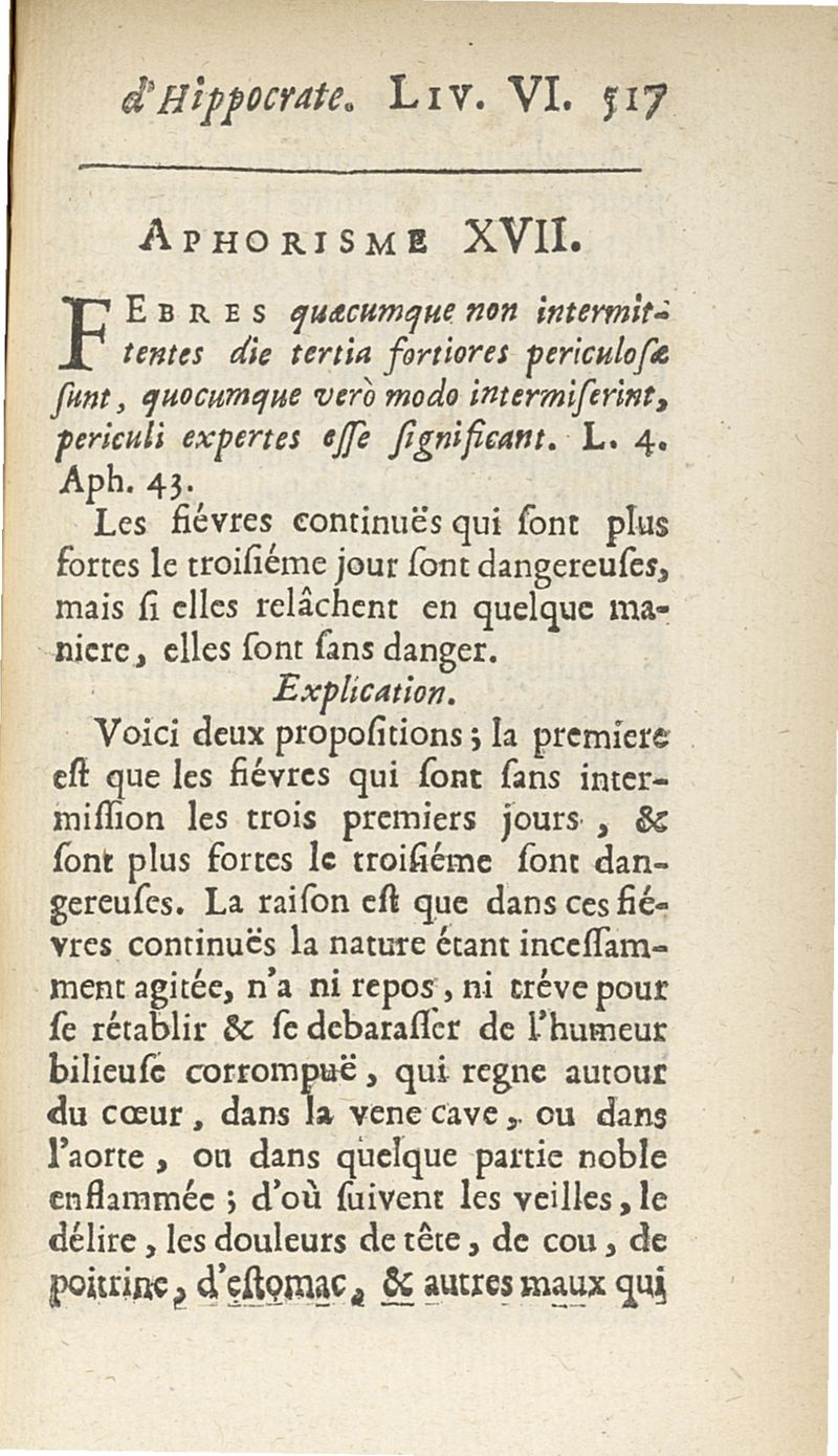 Les Aphorismes d'Hippocrate, rangez selon l'ordre des parties du corps humain...
