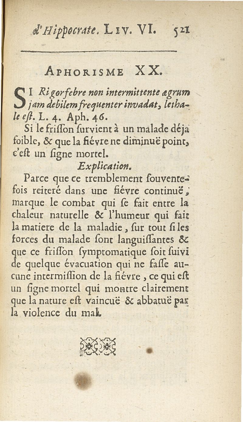Les Aphorismes d'Hippocrate, rangez selon l'ordre des parties du corps humain...