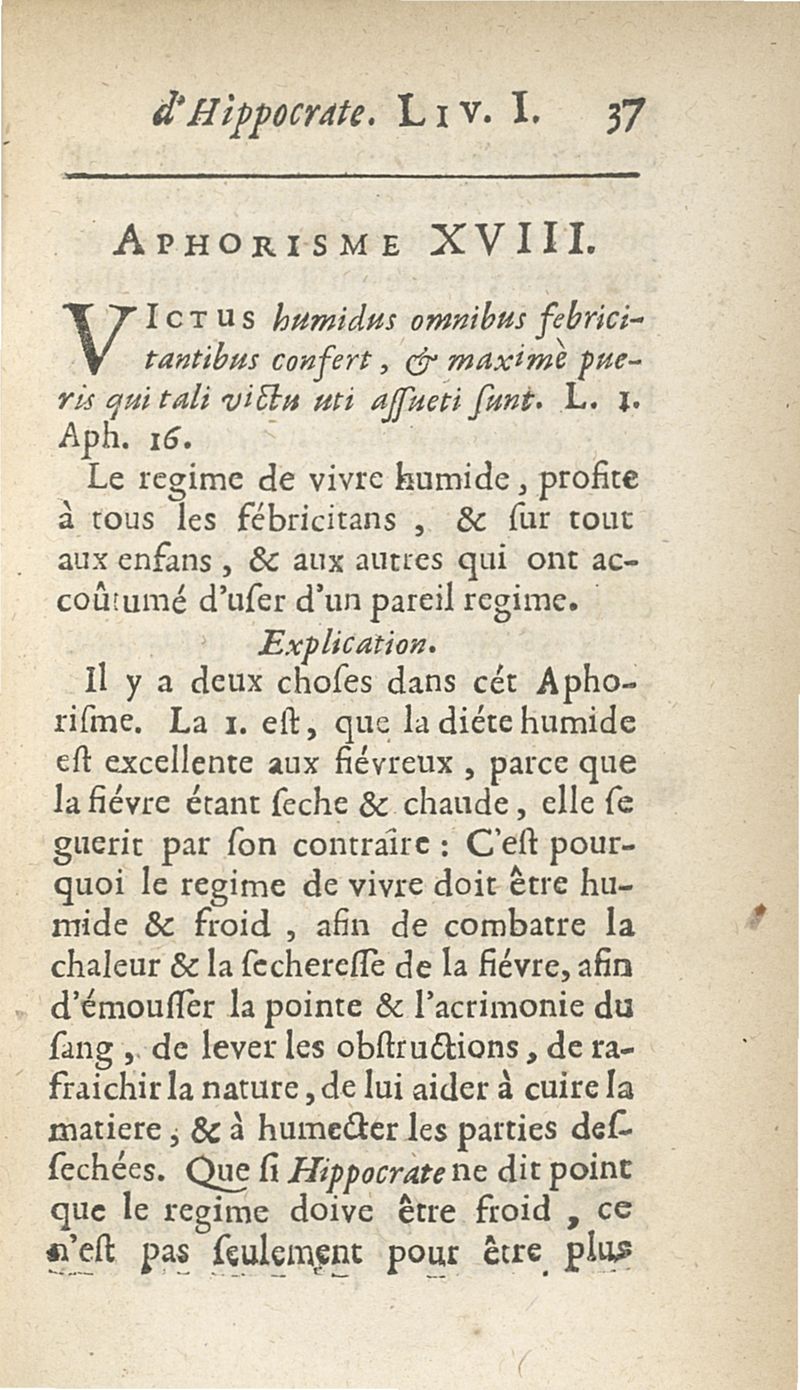 Les Aphorismes d'Hippocrate, rangez selon l'ordre des parties du corps humain...
