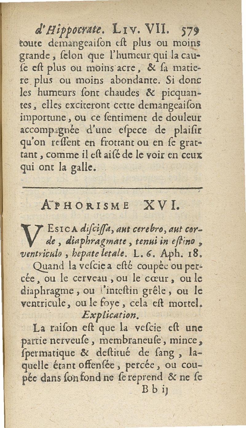 Les Aphorismes d'Hippocrate, rangez selon l'ordre des parties du corps humain...
