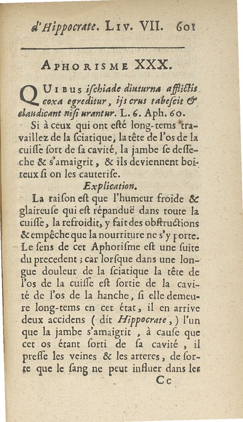 Les Aphorismes d'Hippocrate, rangez selon l'ordre des parties du corps humain...