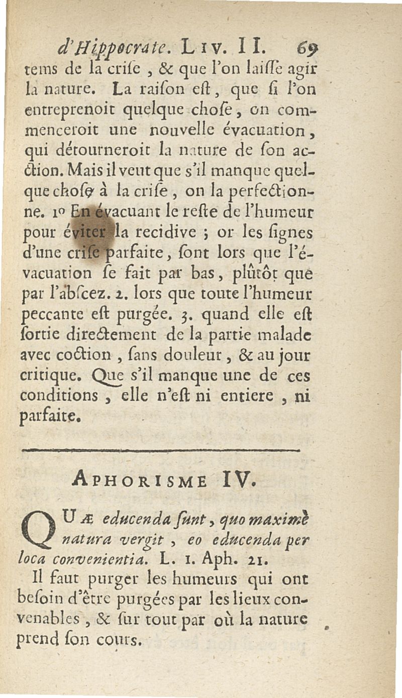 Les Aphorismes d'Hippocrate, rangez selon l'ordre des parties du corps humain...