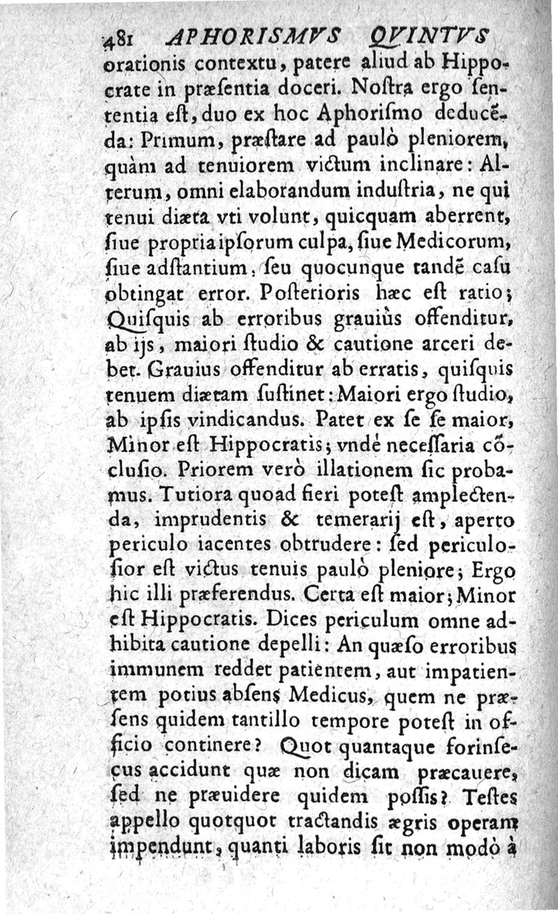 Controversiae theoricae practicae, in primam aphorismorum Hippocratis sectionem. Opus in duas partes divisum, philosophis ac medicis perutile ac perjucundum, in quo quaecunque ad venae sectionem, purgationem, & probam victus rationem pertinent, non minùs accuratè, quàm acutè ac eleganter in utramque partem disputantur ac enodantur. Auctore Christophoro Cacheto... Pars prima