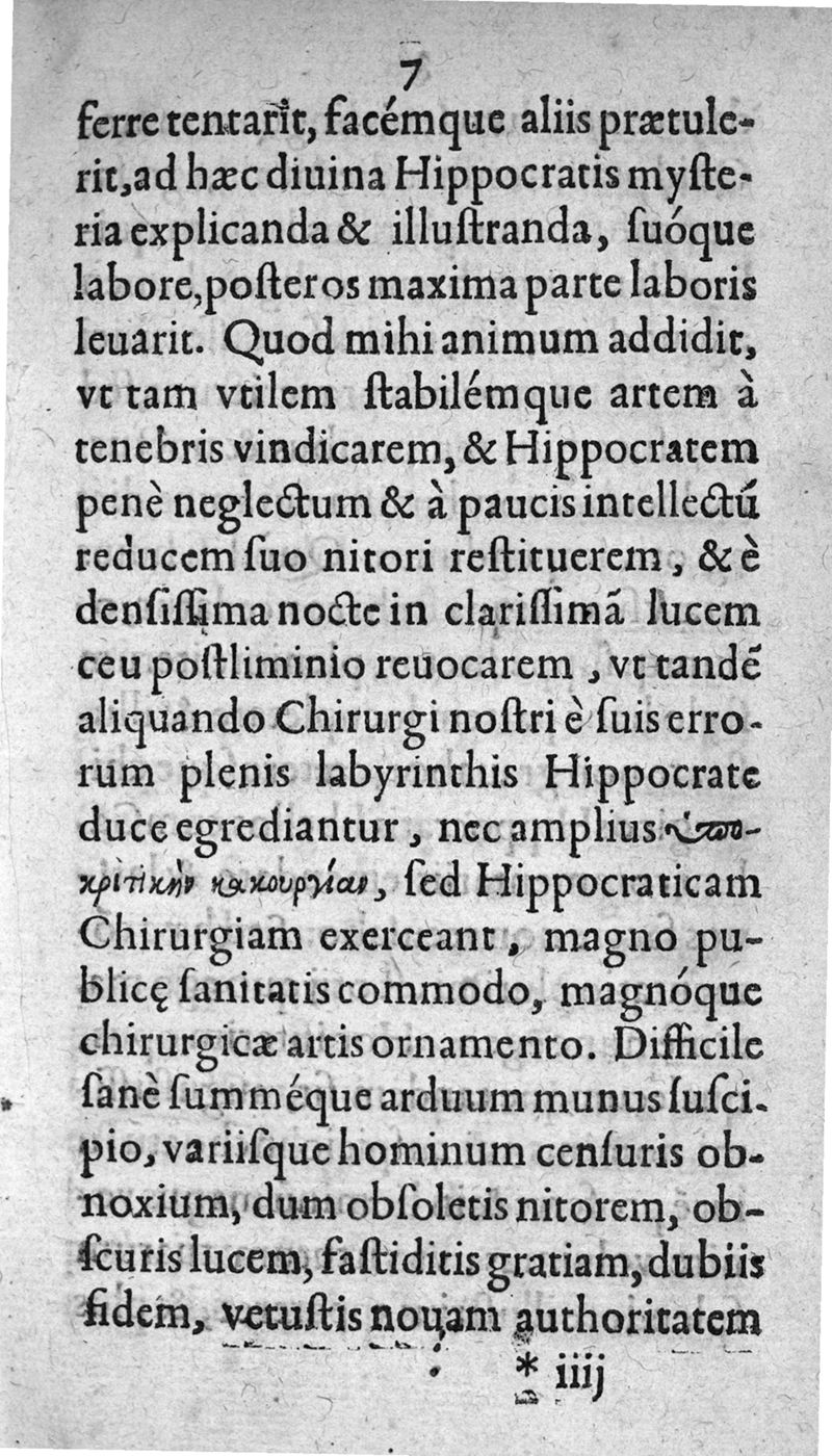 Hippocratis Chirurgia de Medico; de vulneribus; de hæmorrhoidibus; de fistulis; de vulneribus capitis, nunc primum Graece restituta, Latinitate donata, et commentariis illustrata. A. Steph. Manialdo ...
