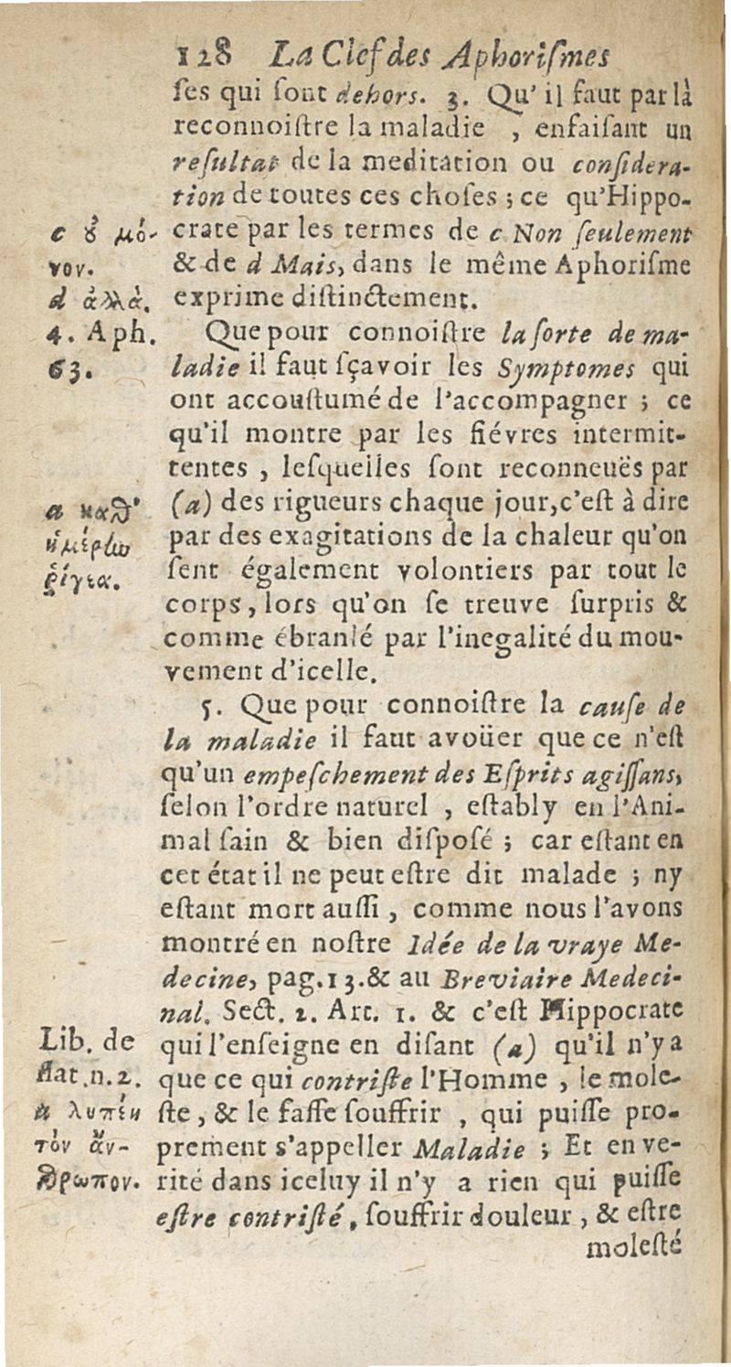 Les Aphorismes d'Hippocrate, traduits nouvellement en françois...et la clef de cette doctrine...[trad. par Meyssonnier]