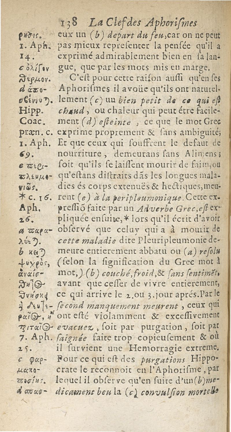 Les Aphorismes d'Hippocrate, traduits nouvellement en françois...et la clef de cette doctrine...[trad. par Meyssonnier]