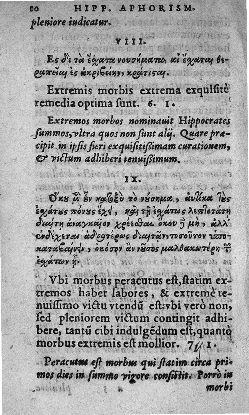 Hippocratis Aphorismi Græce et Latine, ita digesti in ordinem, ut mutuo sese explicare, & ad morborum curationem singuli suo è loco prodire videantur, cum brevi expositione ex Galeni commentariis desumpta. Ejusd. Hippocr. Prænotionum libri tres, cum explicatione eodem ex fonte hausta. Per Joannem Butinum medicum. Insignores aliquot sententiae selectæ ex libris Aurelii Cornelii Celsi