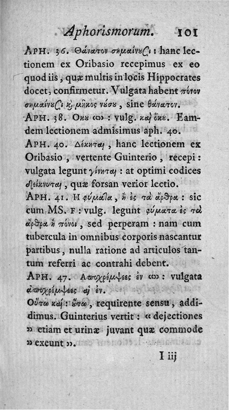 Hippocratous Aphorismoi kai Prognōsticon = Hippocratis Aphorismi et Praenotionum liber