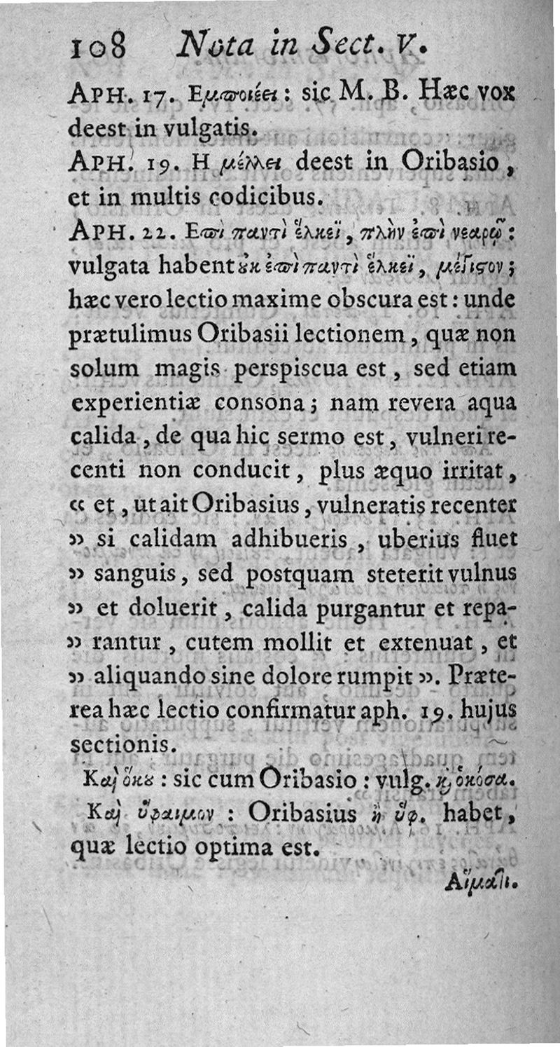 Hippocratous Aphorismoi kai Prognōsticon = Hippocratis Aphorismi et Praenotionum liber