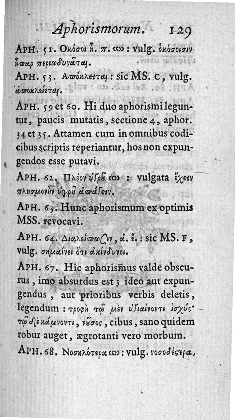 Hippocratous Aphorismoi kai Prognōsticon = Hippocratis Aphorismi et Praenotionum liber