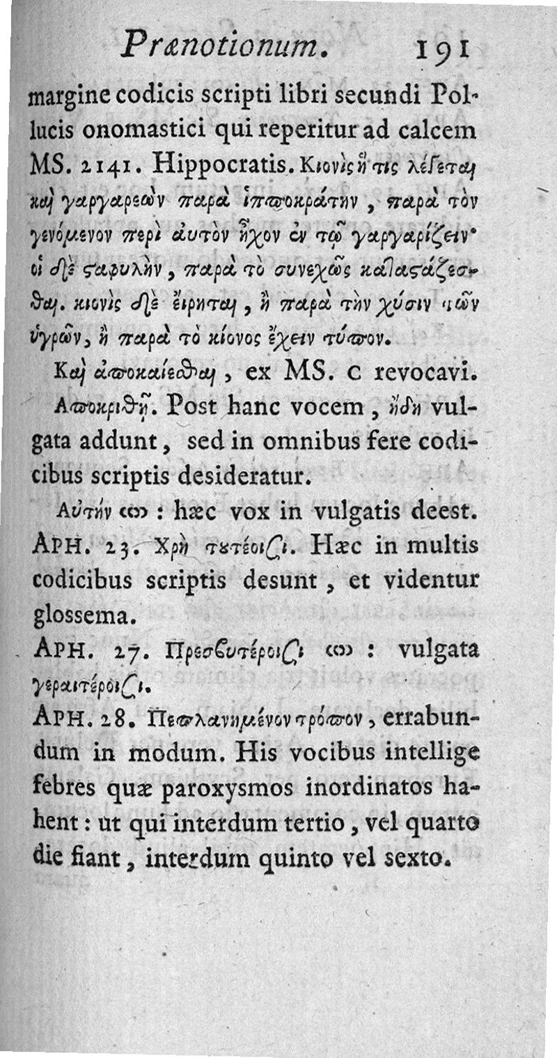 Hippocratous Aphorismoi kai Prognōsticon = Hippocratis Aphorismi et Praenotionum liber