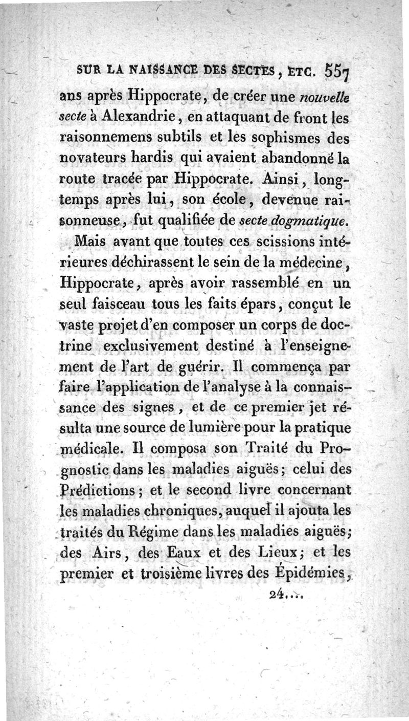 Traités d'Hippocrate : Du régime dans les maladies aiguës : Des airs, des eaux et des lieux trad. sur le texte grec, d'après la collation des manuscrits de la Bibliothèque du Roi, avec une dissertation sur les manuscrits; les variantes, et des observations analytiques sur la doctrine d'Hippocrate