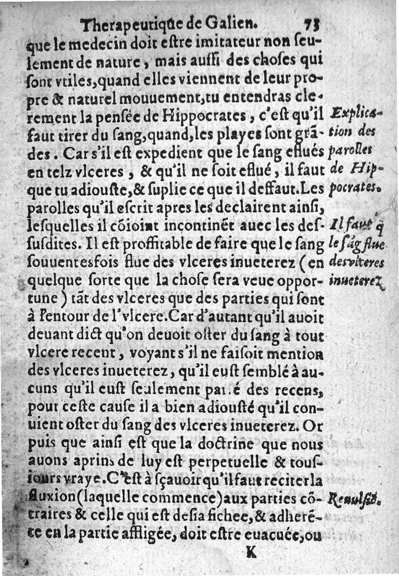 Les six principaux livres de la therapeutique de Claude Galien, avec le deuxiesme de l’art curatoire à Glaucon, ausquelz est ajousté le livre des Tumeurs contre nature, necessaires à tous Chirurgiens. Reveu et corrigé de nouveau