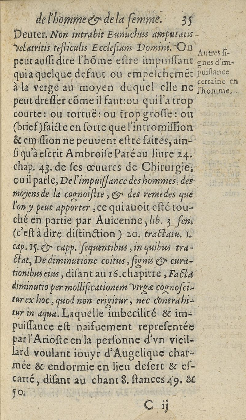 Discours sur l'impuissance de l'homme et de la femme auquel est declaré que c'est qu'Impuissance empeschant & separant le Mariage...