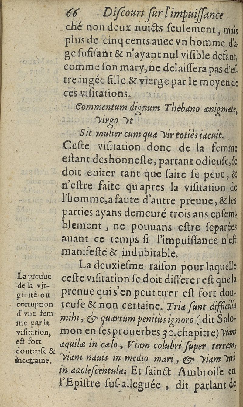 Discours sur l'impuissance de l'homme et de la femme auquel est declaré que c'est qu'Impuissance empeschant & separant le Mariage...