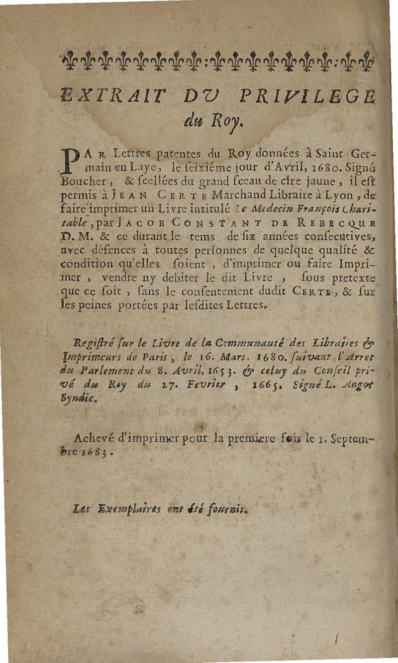 A Lyon, chez Jean Certe, 1683.