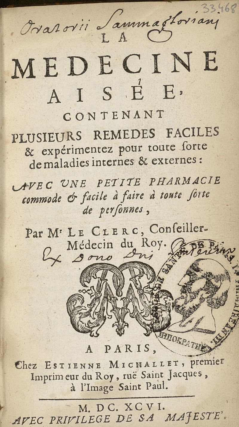 La medecine aisée, contenant plusieurs remedes faciles & experimentez pour toute sorte de maladies internes & externes : avec une petite pharmacie commode...