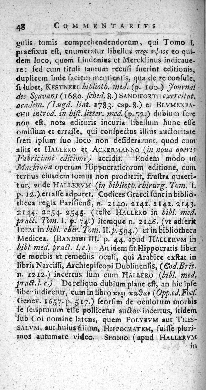 Hippocratis De visu libellus... edidit notisque et aliorum et suis illustravit Jo. Henr. Jugler