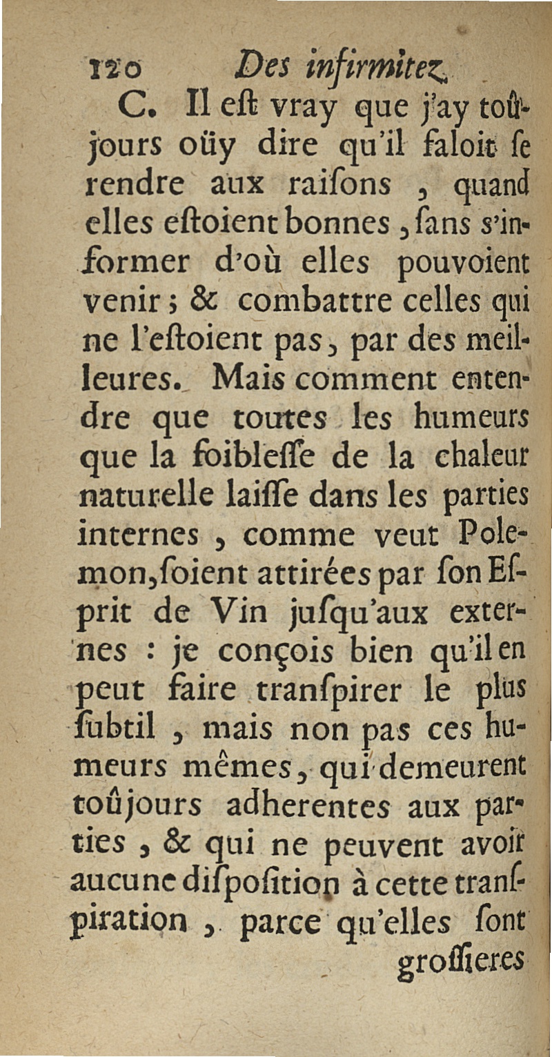 Traité de la transpiration des humeurs, qui sont les causes de la maladie. Ou la methode de guerir les malades dans le triste secours de la frequente saignée. Discours philosophique