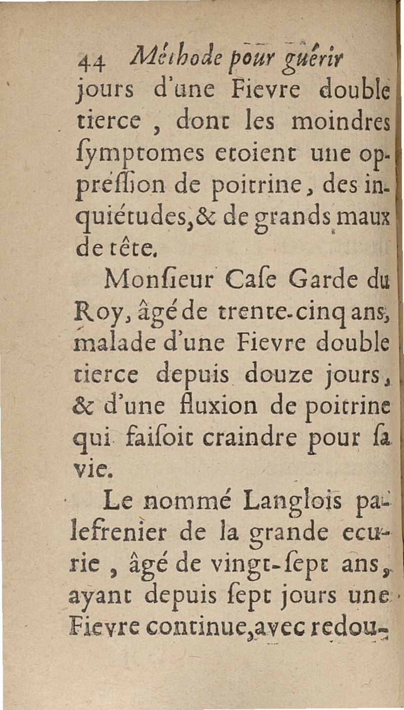 Methode pour guerir toute sorte de fievres, sans rien faire prendre par la bouche. Découverte et donnée au Roy...
