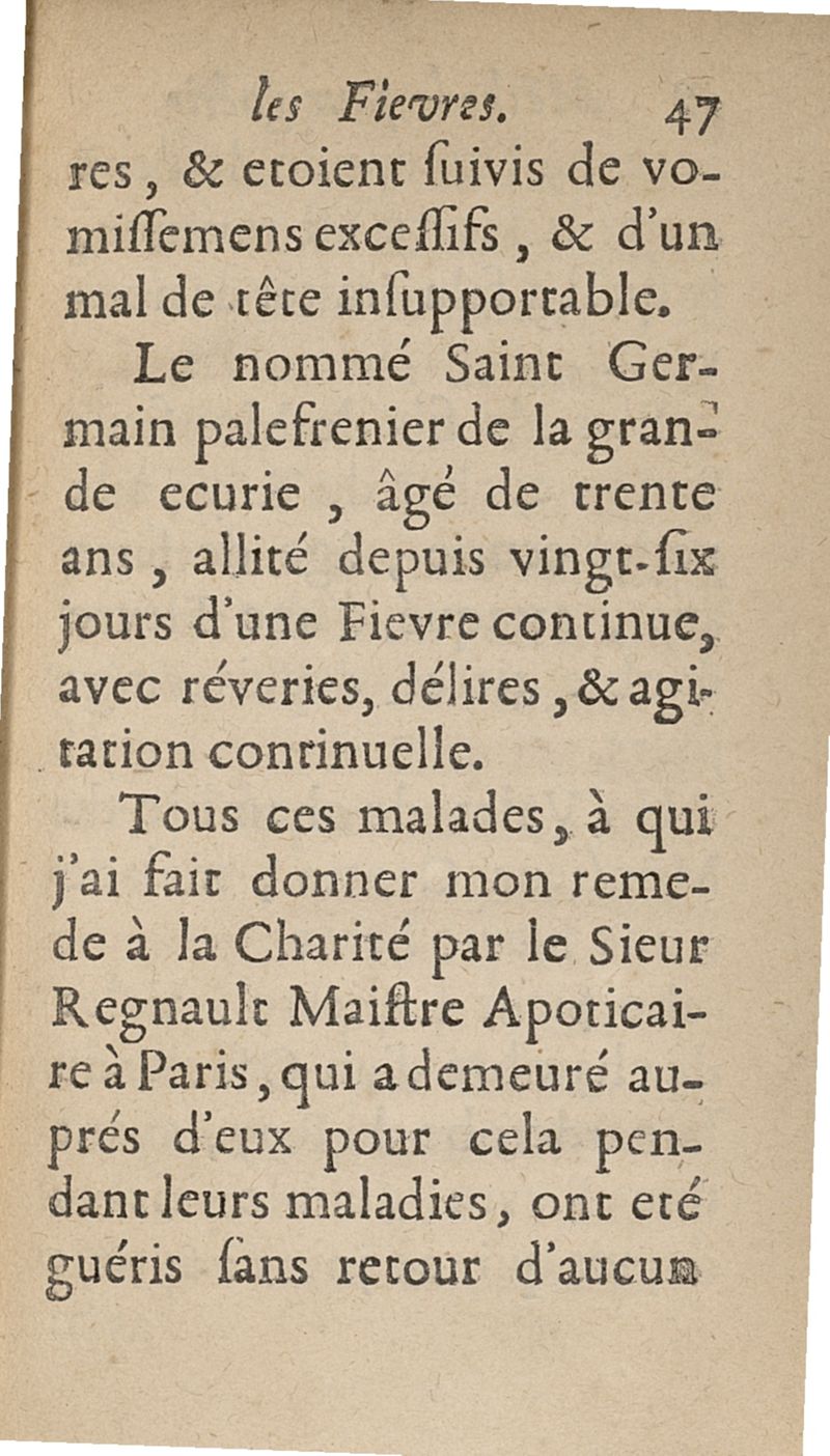 Methode pour guerir toute sorte de fievres, sans rien faire prendre par la bouche. Découverte et donnée au Roy...